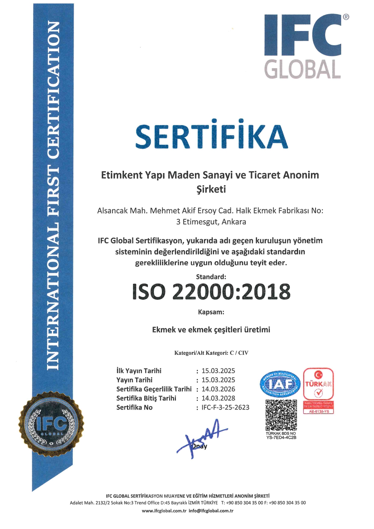 ISO 22000: 2018 VE ISO 9001:2015 Kalite Yönetim Sistemi aracılığı ile “Kaliteyi